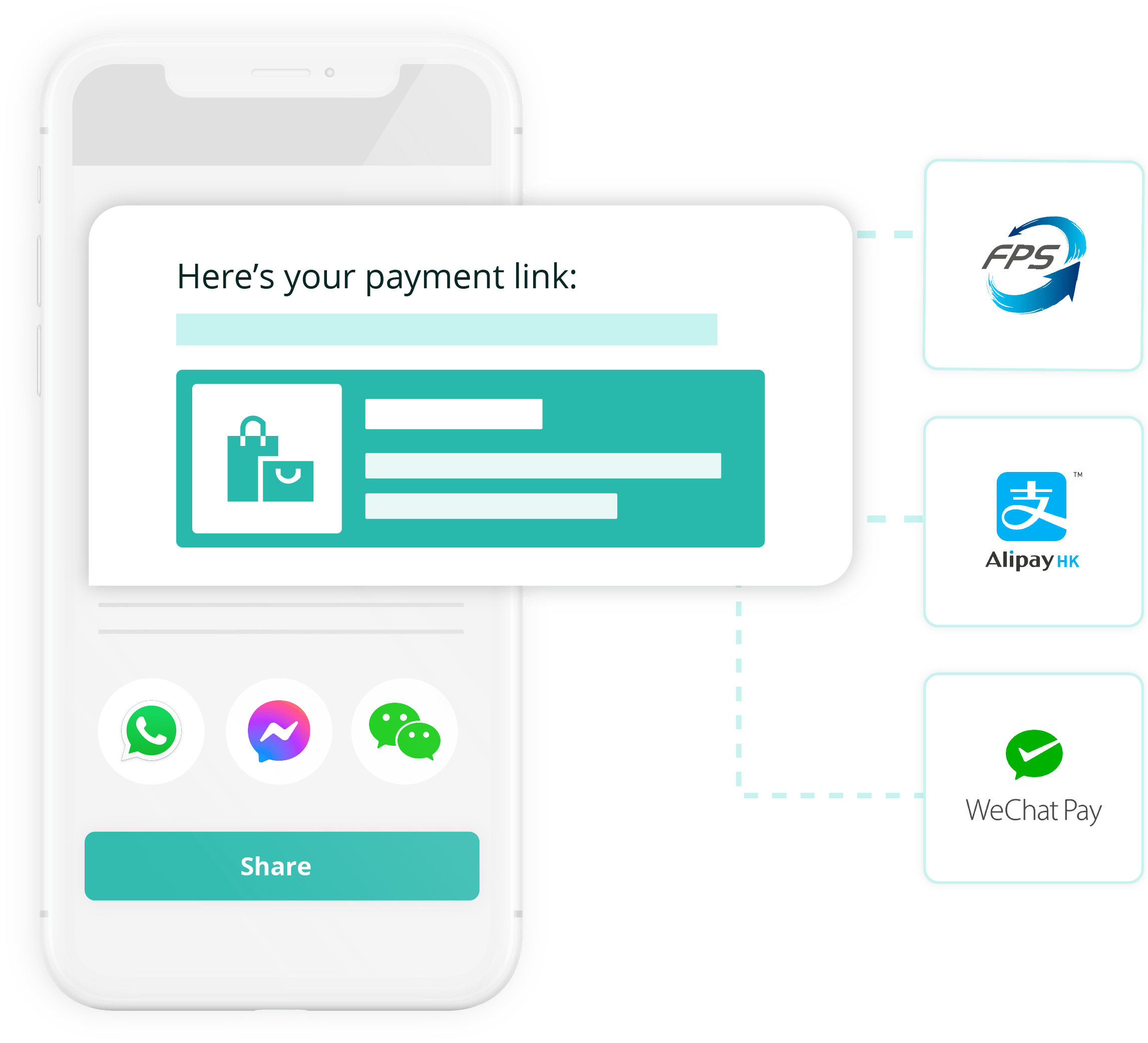 付款鏈結同時支援 Alipay 支付寶、WeChat Pay 微信支付、FPS 轉數快、PayMe 等